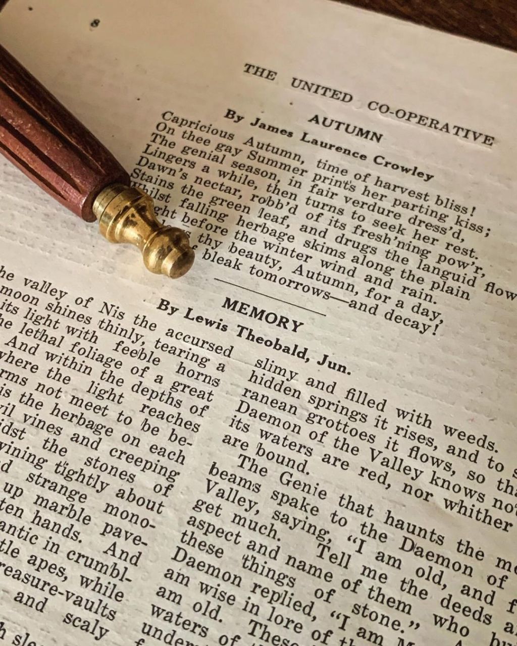 « Memory », poème en prose écrit au printemps 1919
