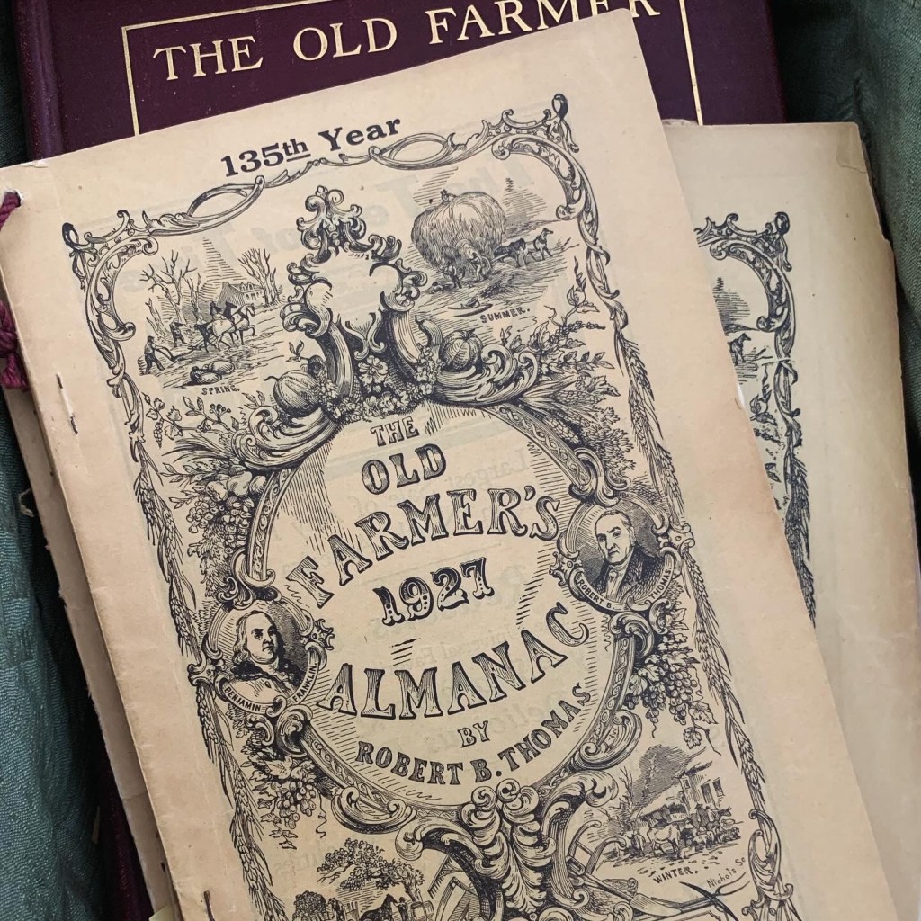 « Que les vieux almanachs ne vous intéressent pas dépasse mon entendement. Ils sont les fascinants symboles d’une continuité nationale, des morceaux délicieux de folklore rural informel. Vous savez, je suppose, que le Pr Kittredge de Harvard a écrit un livre sur les us et coutumes de Nouvelle-Angleterre à partir du Farmer’s Almanack — de son contenu & de son histoire. J’ai ce tome — vous devriez vraiment le lire ! Il fait autant partie de l’éducation prodiguée en Nouvelle-Angleterre que les Friends’ Beans ! »