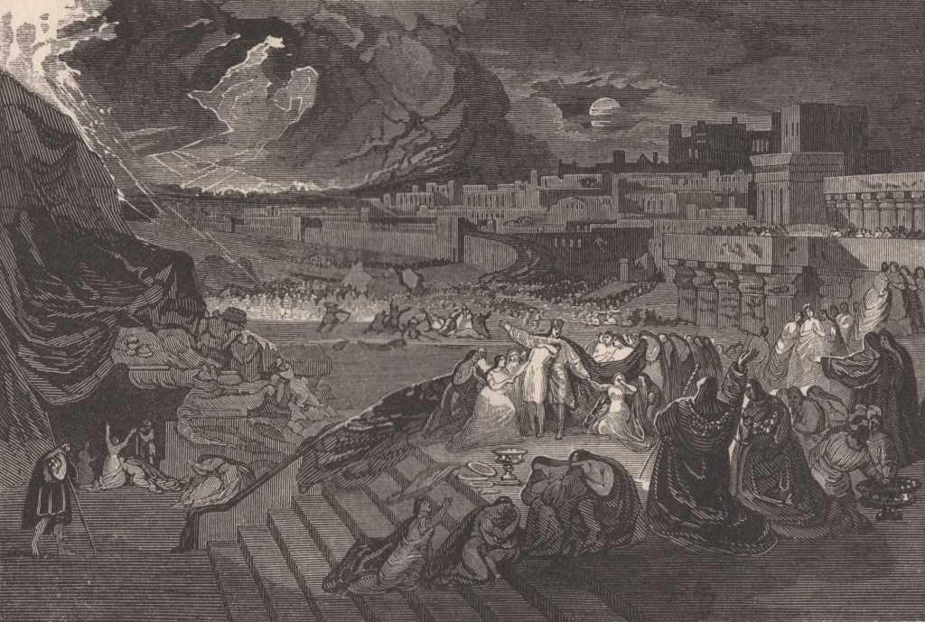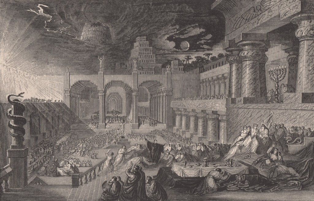 Pour résumer, je dirais que l’œuvre de Martin se caractérise par son recours à la suggestion de vastes espaces, à la colossale architecture antique, et par sa maîtrise démoniaque des sources de lumière, évanescentes et subtiles dans une noirceur étouffante — la vorace obscurité du néant extérieur, dont le fluctus decumanus palpite si fort contre les frêles digues de notre petit monde de clarté. L’effet le plus typique de Martin est la représentation d’une ville ou d’un mirage de ville aux airs de distante Babylone, que submerge une lumière surnaturelle et terrible — une esthétique formelle qui exerce sur mon imagination personnelle une attraction si puissante que je suis peut-être enclin à gratifier l’artiste d’une évaluation par trop généreuse. À mon sens, il fait sans l’ombre d’un doute partie des quelques géants prééminents de la Fantasy picturale. […]