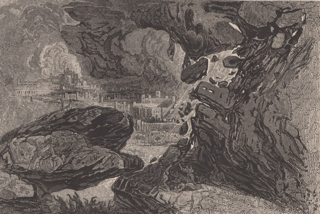 (1) Curieusement, les histoires de Lovecraft ne comportent aucune référence à John Martin, quand elles mentionnent d’autres artistes de l’étrange — Goya, Sime, Doré, Angarola, Beardsley. Cet artiste semble pourtant avoir particulièrement inspiré Lovecraft, autant que sa découverte des gravures sur bois de Gustave Doré : « Martin a illustré Milton — bien mieux que ne le fit ensuite Doré, à mon avis. »